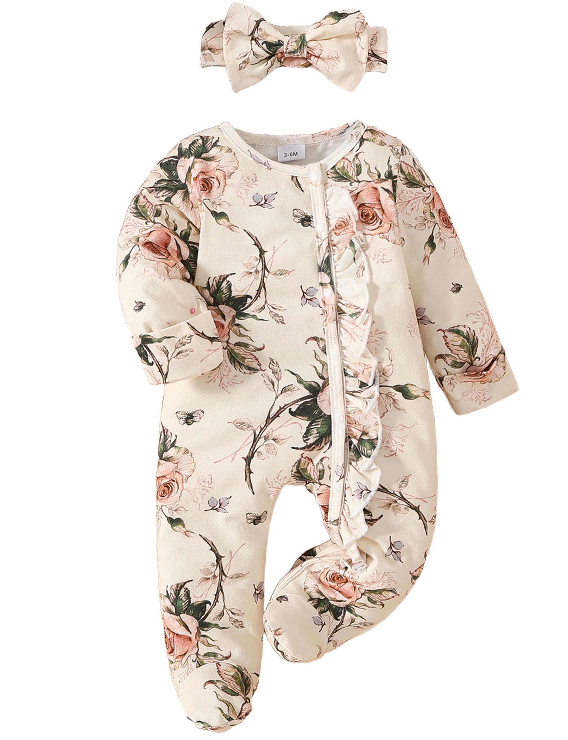 The floral print reads vintage and neutral, so it matched a lot of hats and blankets we already had. The built-in feet were handy on chilly mornings and kept tiny toes tucked.