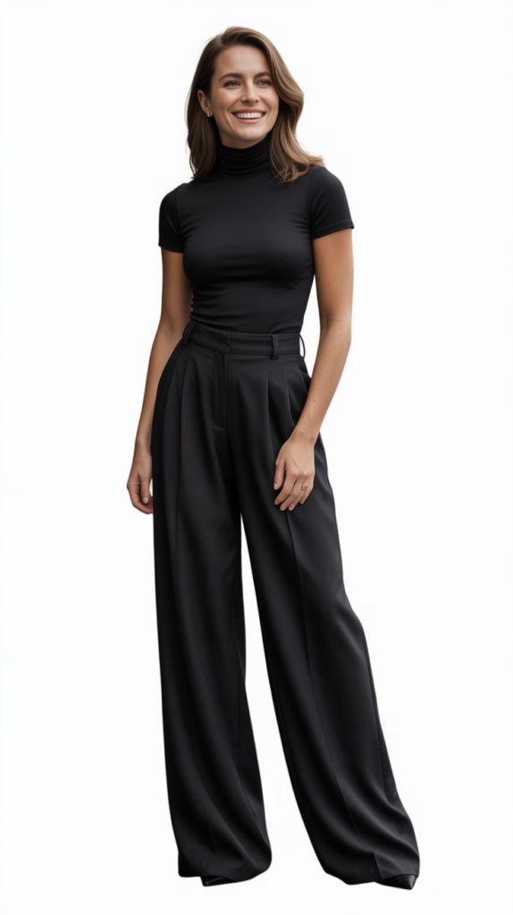 3. Monochrome Turtleneck with Wide-Leg Trousers