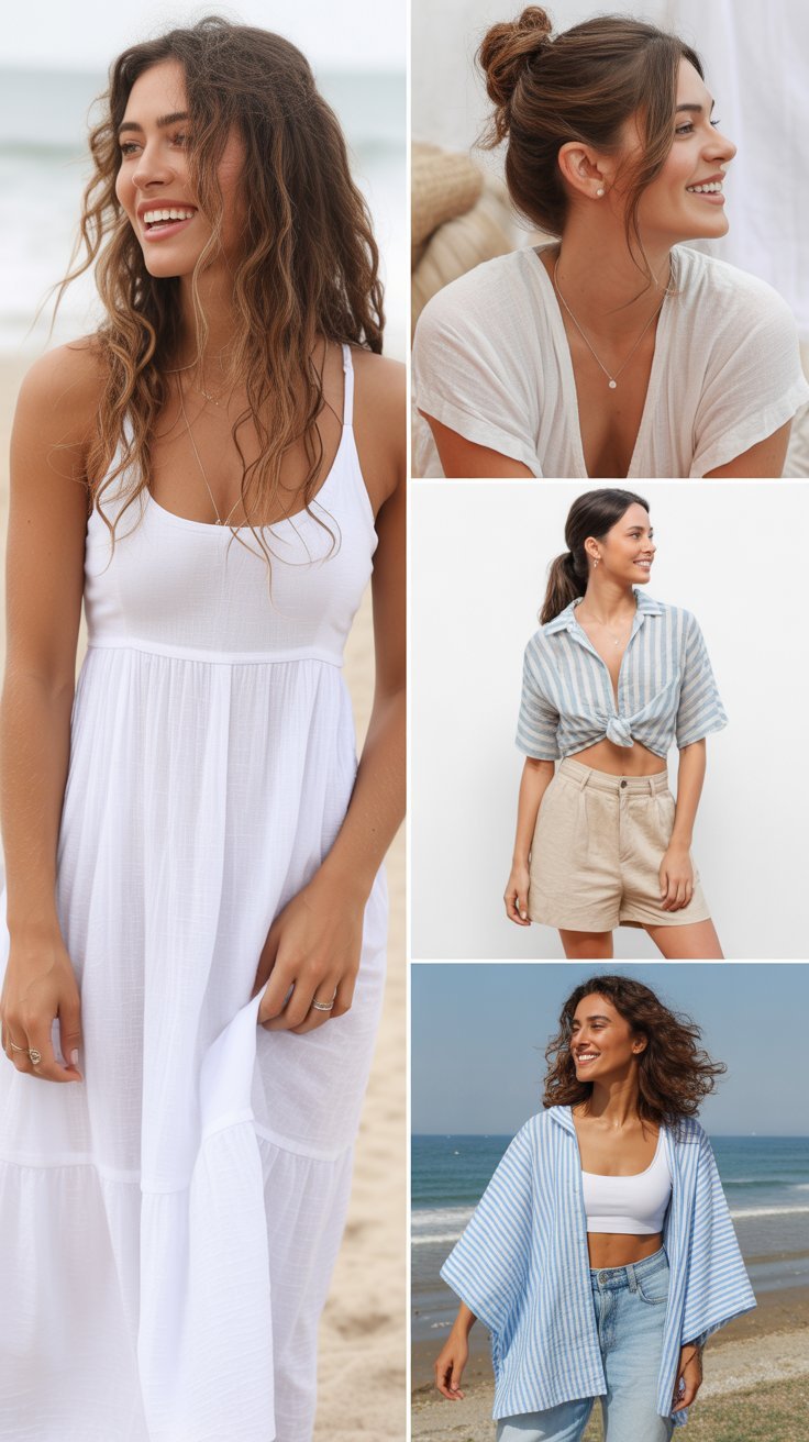 Each outfit idea has been carefully curated to help you navigate different beach scenarios—from casual morning strolls along the shoreline to sunset dinners at beachfront restaurants—while maintaining that relaxed, vacation-ready aesthetic that summer demands.